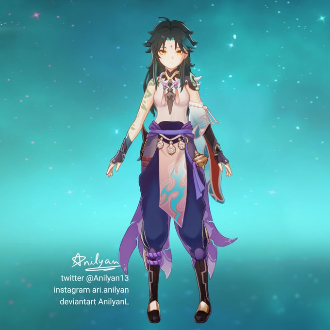 Aoi no Okina fanmade skin - check Venti/Suikou here: twitter.com/Anilyan13/stat… For tutorials, freebies, comms and my skins collection, see thread #GenshinImpact #genshintwt #Genshin #Genshinfanart #genshinedits #genshinskins #xingqiu #xingqiufanart #xingqiuedit