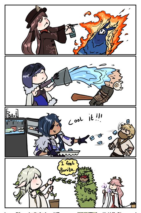 Applying elements without vision (Comic by me) #GenshinImpact #Genshinfanart #genshintwt #HoYocreators #genshinimpactfanart #HuTao #Kaeya #yelan #nahida #yaemiko #Genshinmemes