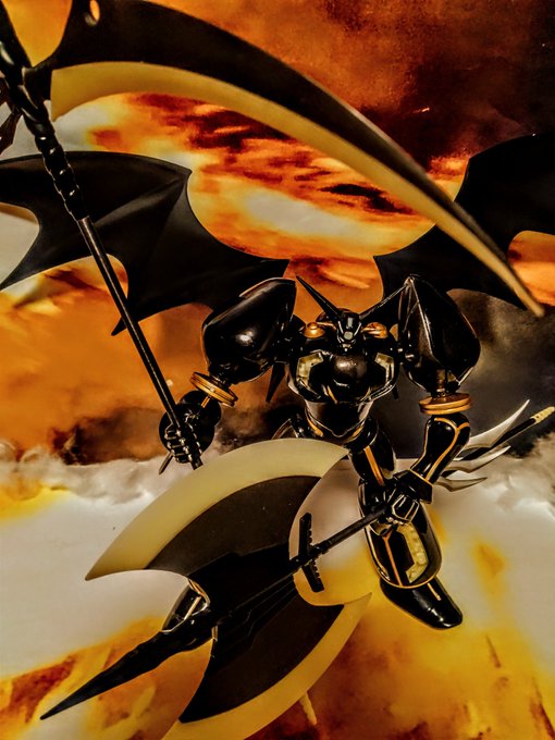 #夜のフィギュア撮影会 お題「危険」 11.15 Photo session theme "Danger" Getter rays are dangerous energies⚡. It's best not to touch it. #GetterRobo Black Shin Getter Robo. Shot from 4 angles with fixed pose and placement📸.