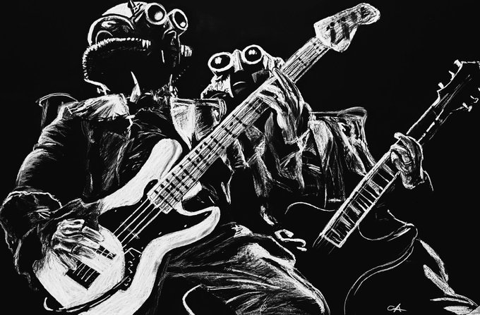 drew a lil silly because kids temp rant is living rent free in my mind. BTW! CONGRATS TO THEM FOR THE AMAS WIN!!!🥹🤧🍾🎊 #ghosttwt #thebandghost #ghostbc #tobiasforge #GhostBand #ghostfanart