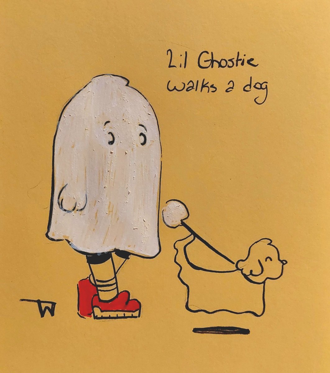 Lil Ghostie walks a dog #art #doodle #artchallenge #inktober #ghost #lilghost #ghostdog #halloween #artistsontwitter #myart