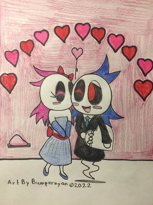 Love Day number 4. 💖❤️💖 During the day, at the Valentines Prom. We see Chloe give Caspur a sweet kiss. 💋 Awww, aren’t they so adorable together. 💝 #BumperMonster #Illustrations #illustrator #OC #cuteart #ghostoc #ValentinesDay #バンパーブロック #イラスト