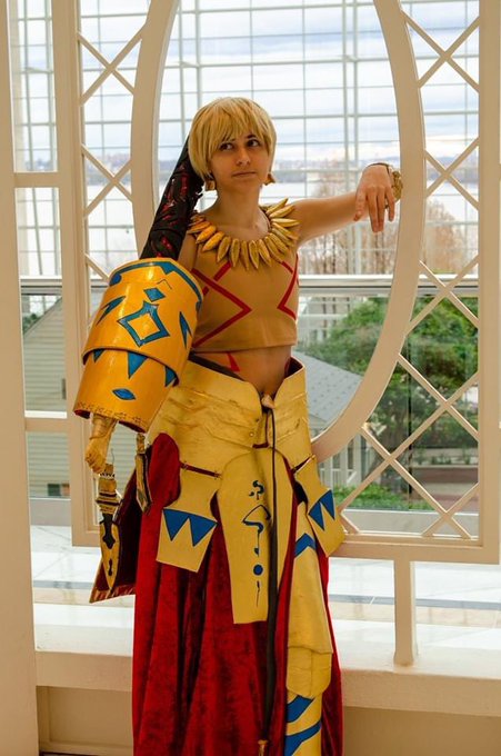 Cannot wait to wear Gil again but it won’t be warm enough this (limited) convention season. Cannot wait to see DesertRain Cosplay again soon though! #gilgameshcosplay #sabercosplay #fgo #fgocosplay #fategrandordercosplay #saber #artoriacosplay #artoria #gilgamesh #cosplay