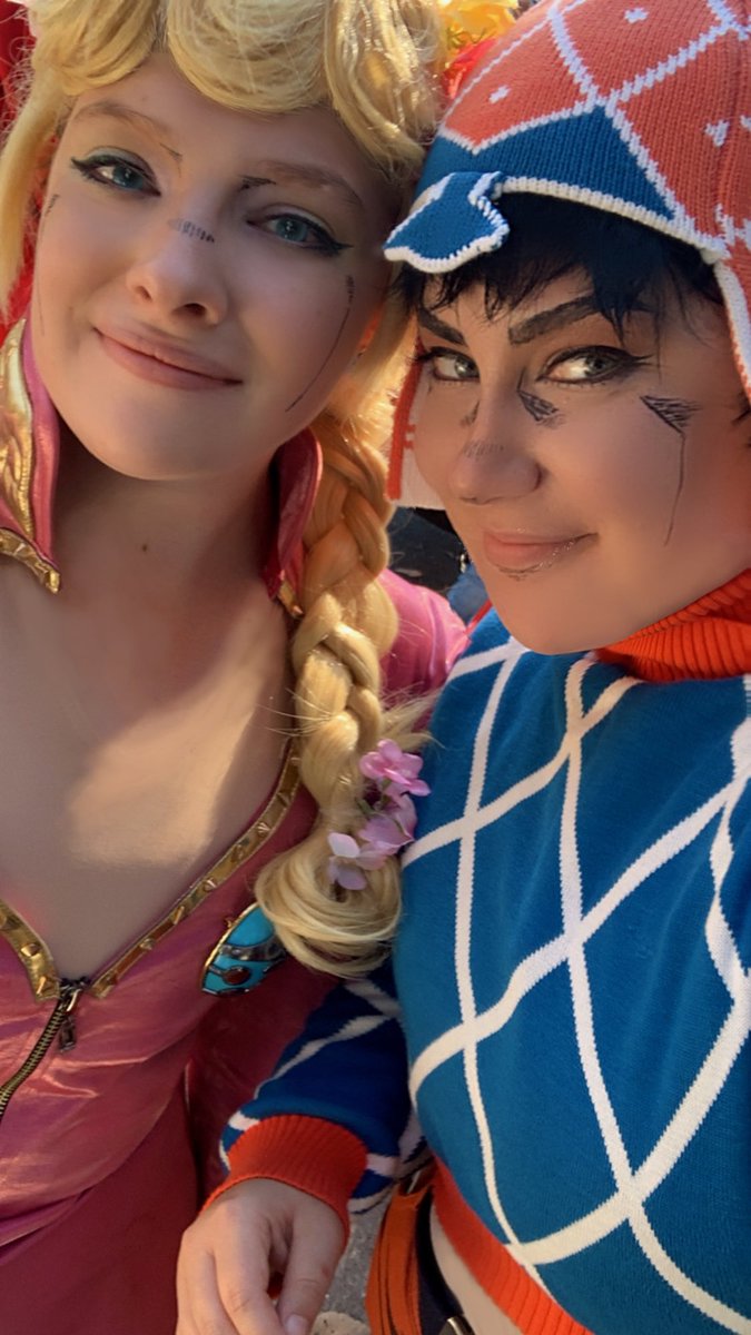 I'm stoked to share the pics we took yesterday and show off my Giorno! Nathan's obnoxiously neon pants are making these interesting to edit lol 😂 #JOJOsBizzareAdventure #ventoaureo #cosplay #giomis