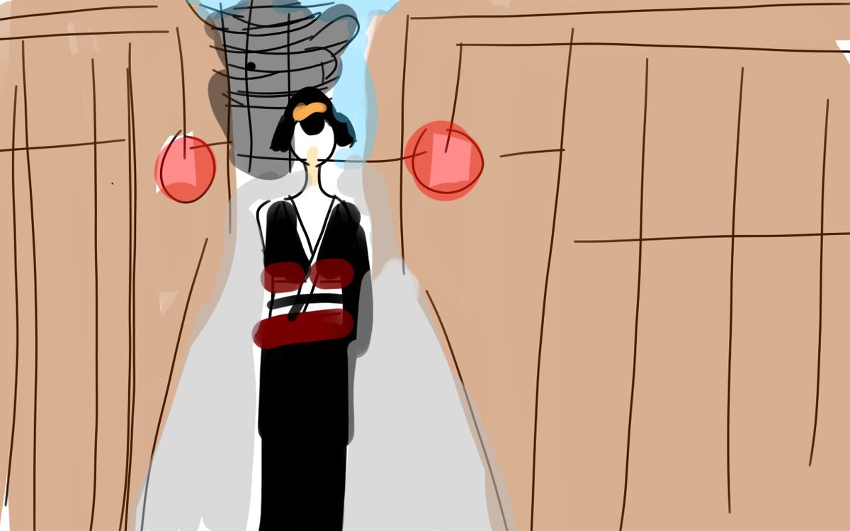 Inktober 2022 Day 7 Prompt: trip. A drawing of a trip to Gion Kobu, Kyoto, Japan, with a Japanese geisha/geiko/geigi woman walking, and with the Yasaka Pagoda temple in Kyoto, Japan. #inktober #inktober2022 #gionkobu #kyoto #japan #gion #geishaart #geiko #geisha #Sketchbook