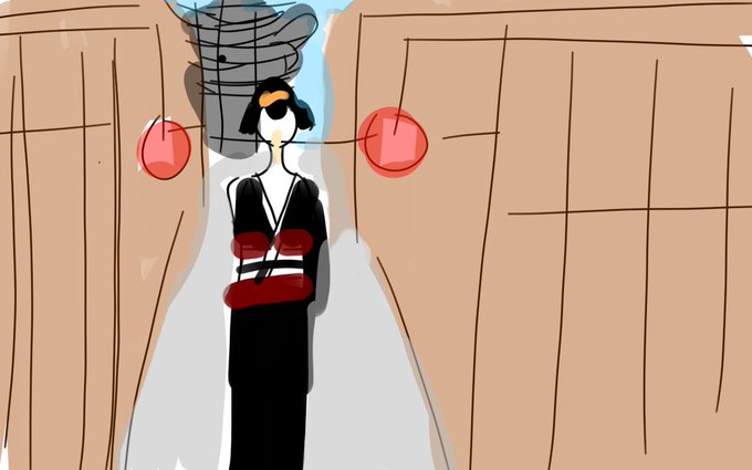 「京都祇園を破壊する猫」 A cat destroying Kyoto Gion #イラスト好きさんと繋がりたい #絵描きさんとつながりたい #誰かの推し作家になりたい #kyoto #京都 #みんなで楽しむTwitter展覧会 #破壊する猫 #猫 #猫好きさんと繋がりたい #祇園 #gion #舞子