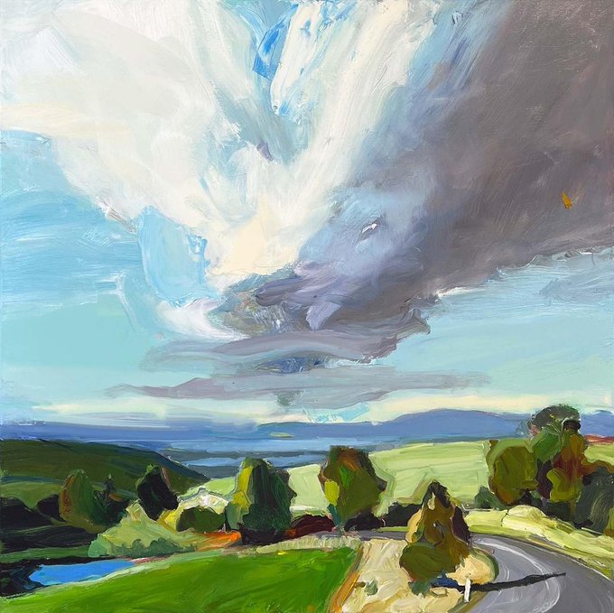 I’ve been meaning to paint this area of Gippsland for some time. Rolling farmland & a beautiful winding road which bursts onto the shoreline near Toora… “Coast Road, South Gippsland”, 85X85cm, oil on polycotton. #landscapepainting #southgippsland #gippsland #morningtonpeninsula