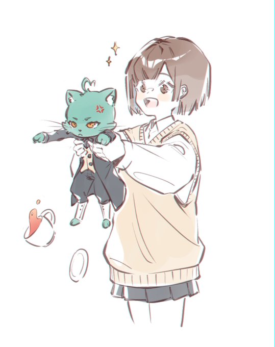 Got a new cat too! 🥳✨ It drinks tea a lot and doesnt wanna drink plain water, what do I do @GeneralGEEGA ? 🤔 #girl_dm_art twitter.com/GeneralGEEGA/s…