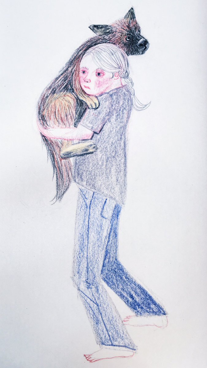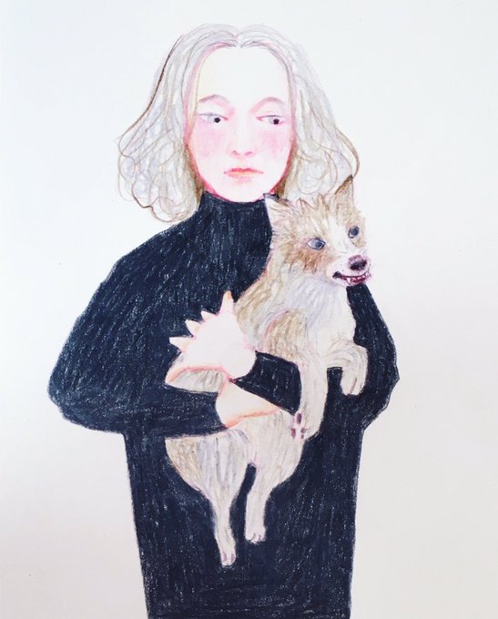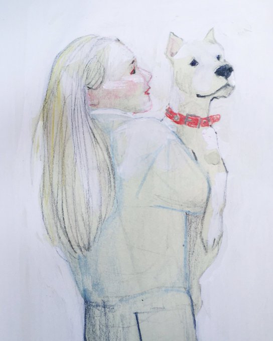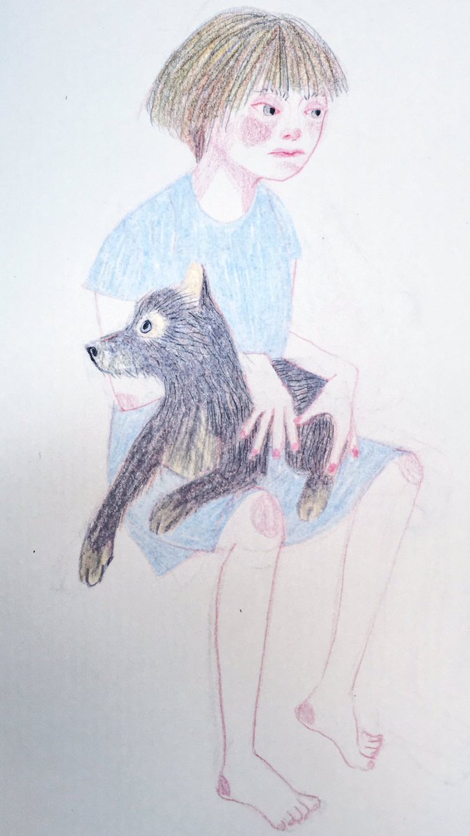 それぞれ Each looking in a different direction #sketch #sketcheveryday #quickdrawing #illustration #watercolorpainting #coloredpencildrawing #portrait #girlanddog #animal #animalillustration #dog #dogillustration #スケッチ #イラスト #水彩画 #色鉛筆 #人物画 #動物画 #犬