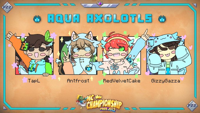 Aqua Axolotls! I’m so so excited for this team (velvet in mcc!) - #mcc #mccfanart #aquaaxolotls #antfrostfanart #velvetiscakefanart #taplfanart #gizzygazzafanart