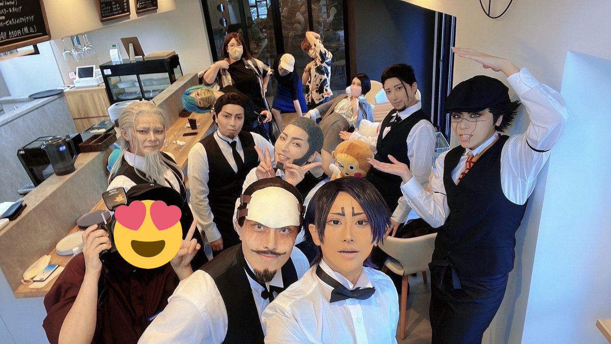 Cosplay #gkmCafe0903 動画撮影中 何を耳打ちしてるのかな? 鶴「昨日発注したス●゛ャータ、発注数量の桁が間違っていたぞ…」 鶴:@zentoyo_ban Photo : @lastng0802