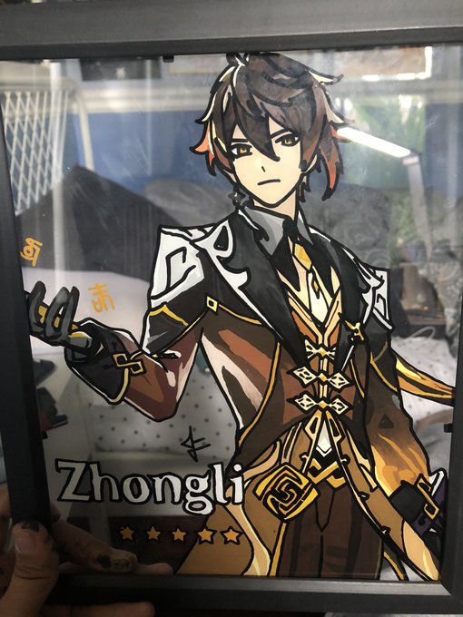 NEW POST!! NEW CONTENT!! FINALLY!! (Etsy link in bio!) #zhongli #genshin #genshinimpact #art #fanart #glasspainting #artist #ArtistOnTwitter #dilu #genshintwt #genshinimpactfanart #SmallBusiness #etsy #drawing #Childe #commissionsopen
