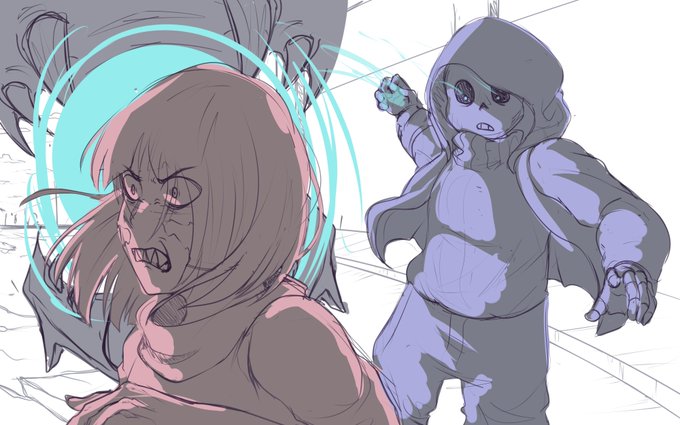 I'm actually very proud of this one, I even recorded the sketch! I didn't hesitate much to draw it so it came out smoothly. Will stream the process probably on Monday or something Thanks for all your suggestions! DON'T finish this sketch tis mine, you can't have it #glitchtale twitter.com/Alx30012003/st…