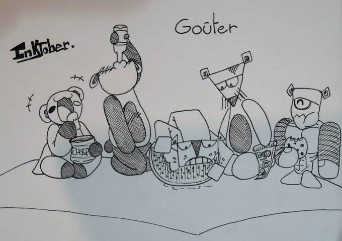 Merci à @AritaaMB pour l’inspiration ❤️ je remonte mon retard avec le jour 27 d’#inktober2022 avec #goûter pas parfait mais bon… #inktober2022 c’est aussi l’occasion de découvrir l’univers graphique des autres et c’est chouette