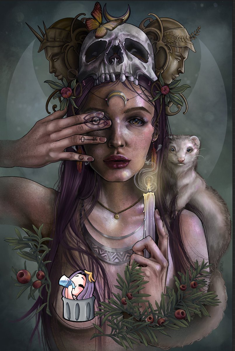 Hi everyone! Happy to share with you my newest #artwork (private comm) - #Goddess of the Crossroads (#Hekate/Hecate)! I really enjoyed working on this one, especially drawing the companion dogs! #digitalart #HumanArtists #fantasyart #mythology #mtg
