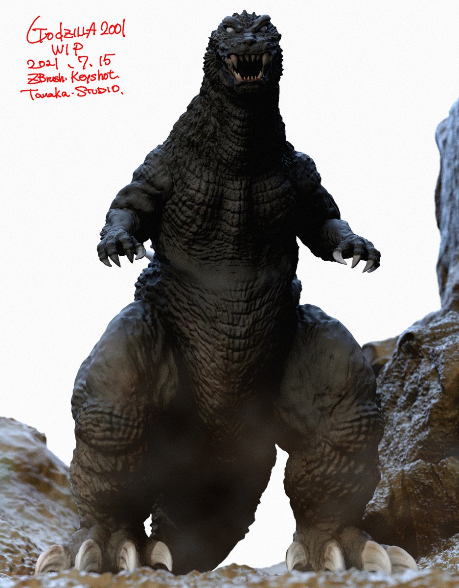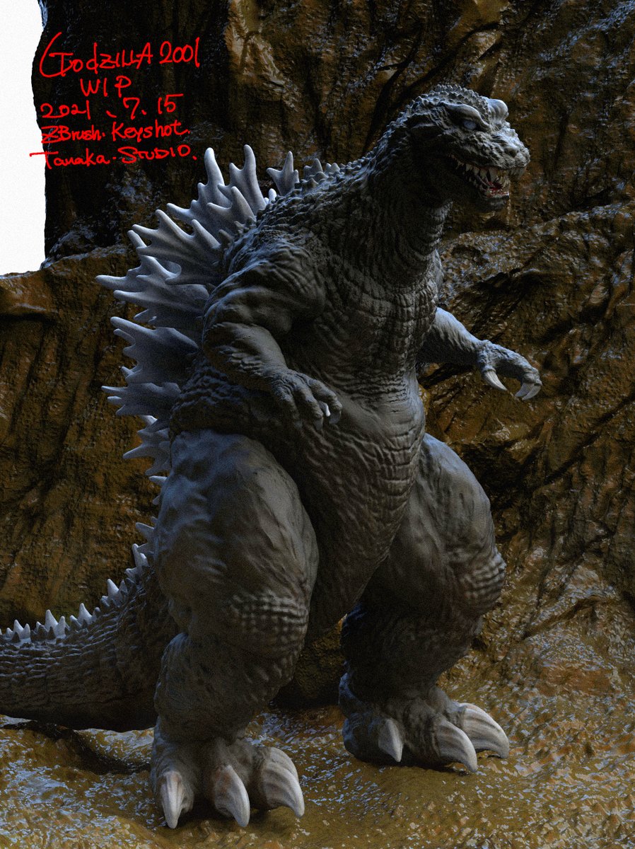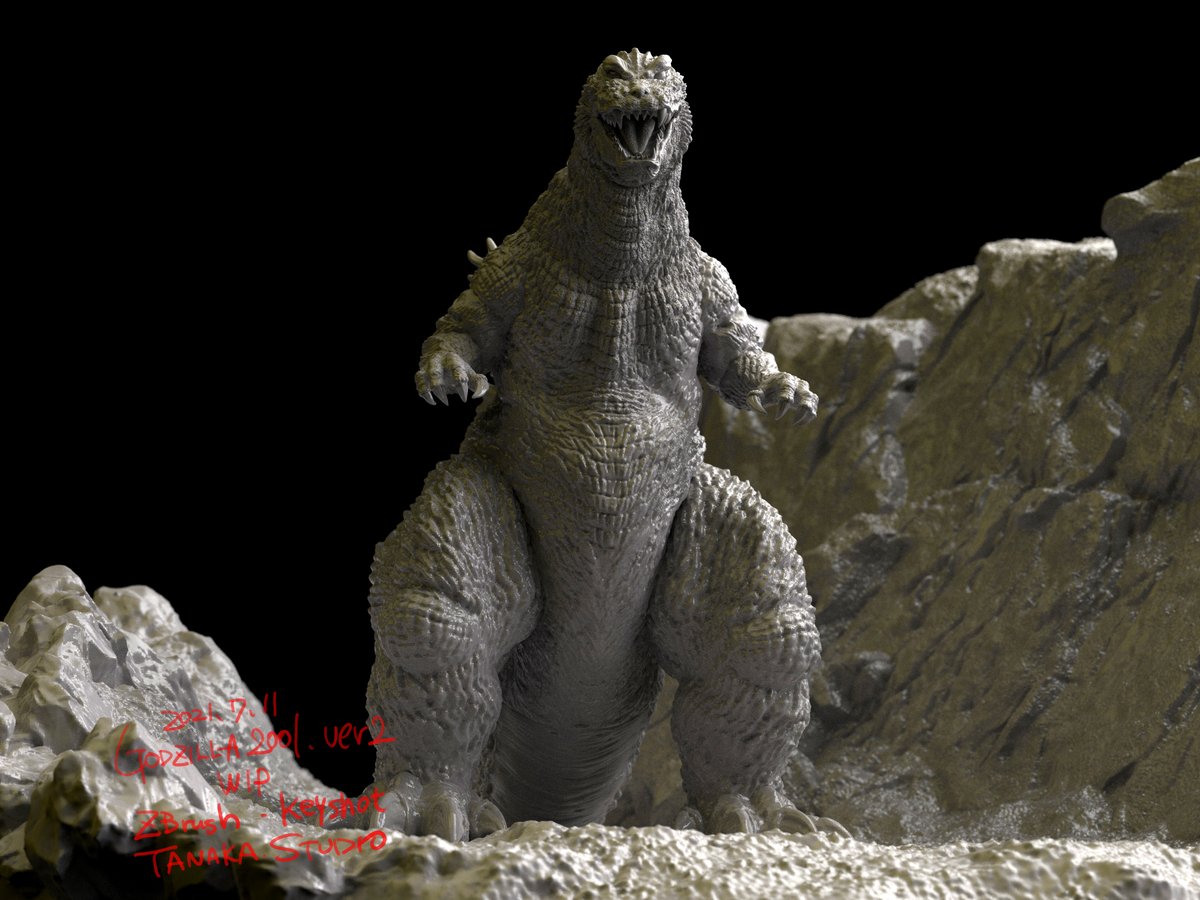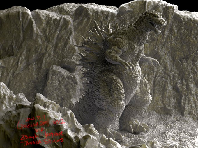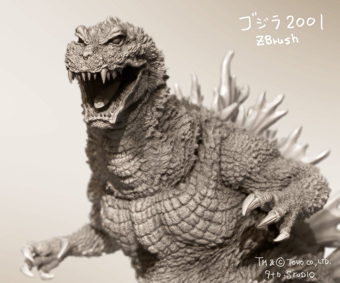 昨年12/31で予約締め切りました「ゴジラ2001」は只今ブラッシュアップしておりますので、近々二次予約を受付ける予定です。勿論WFでも原型展示と受付を行います。宜しくお願いします。 画像1枚目はzbrushデータ段階のものです。 #godzilla2001 #wf2020w