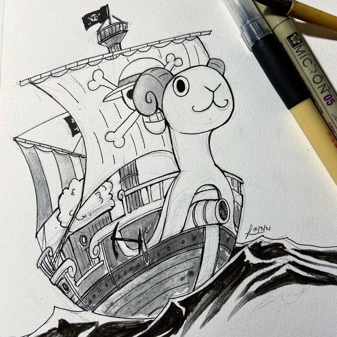 INKTOBER DIA 3 - NAVIO Hj temos o Going Merry de One Piece. N ta tão legal quanto os ultimos por mts fatores, mas amanhã prometo uma arte melhor, talvez uma Sailor Moon, sempre tive vontade de desenhar. Esse ano n perco kkk #inktober #onepiece #art #inktober2021day3 #goingmerry