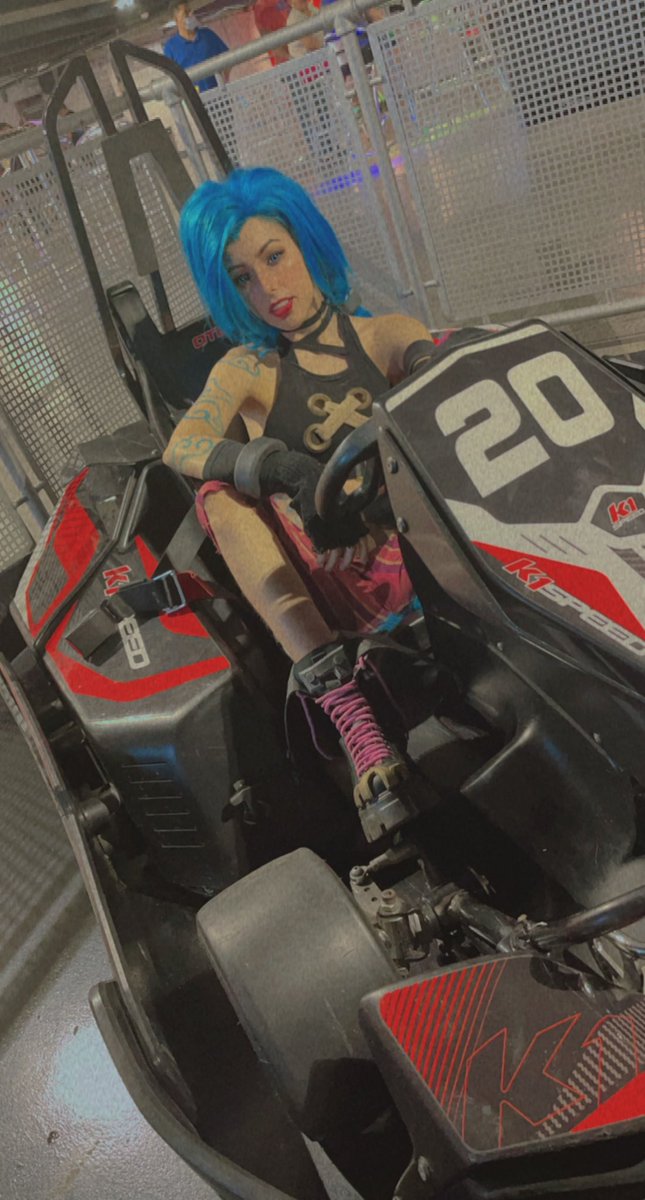 Les comparto unas cuantas fotitos que me tome ayer en los Go Kats! Me la pase genial! 😎✌🏻 #gizerucosplayer #gisellefitch #cosplay #jinxcosplay #cosplayer #jinx #gokarts
