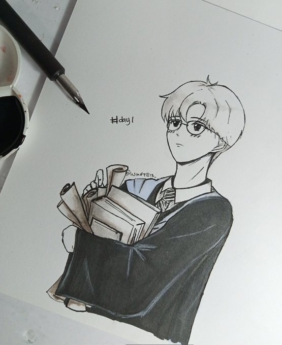 finally finished #day1 of #golchainktober prompt by @golchaclub 🤗 .. i tried to draw Joochan as ravenclaw student 😂😂 #inktober2021 #GoldenChild #golchaart #fanart #art @golchaartbot