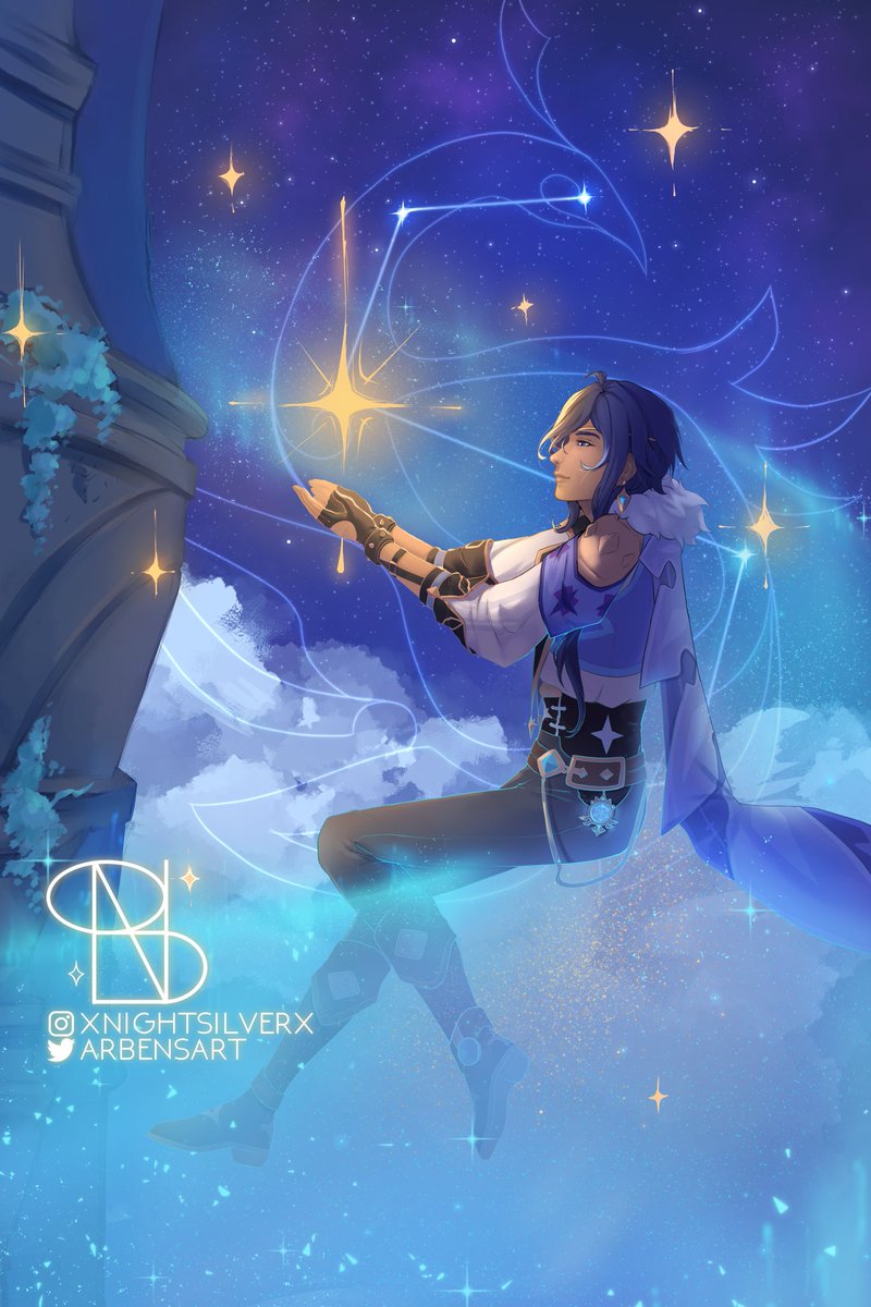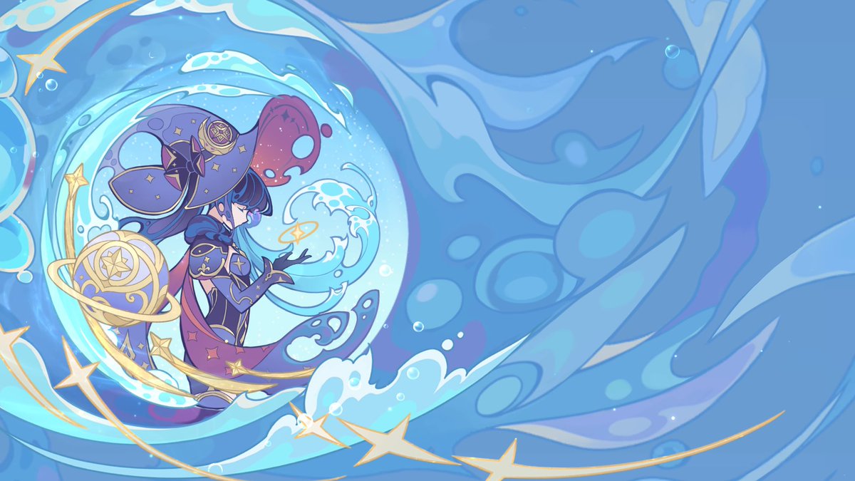 Finally Mona cleanup🙏🏻✨✨Her Domain (puzzle aside) is my second favourite one, I love the aesthetics used with the stars! 💫❤️As usual, the cleanup can be used by everyone for wallpaper! #genshinimpact #mona #goldenapplearchipelago