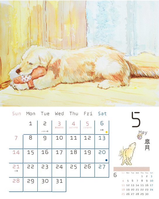8月のタローカレンダーは南魚沼の田んぼです。後方は八海山など越後山脈です。お気に入りの場所で夏には合宿,秋には写生,冬には雪遊びでよく行きました。 #goldenretriever #虹の橋 #水彩