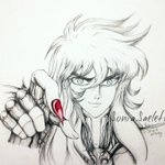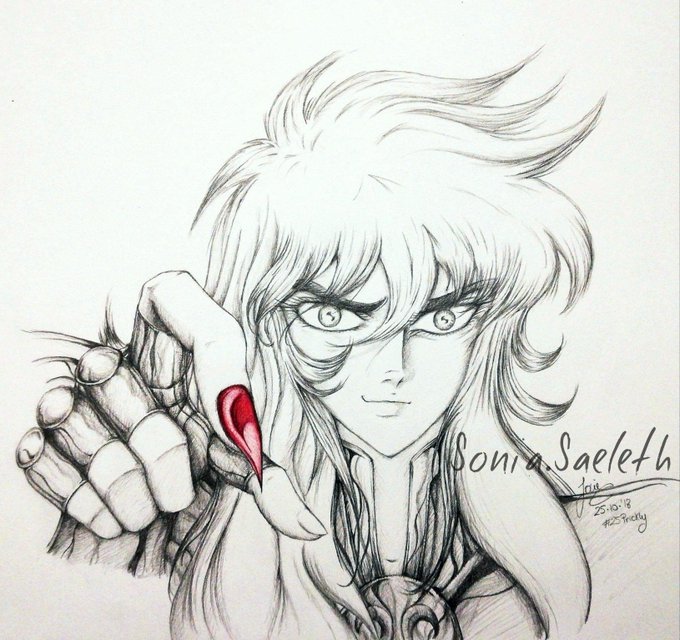 From SAINTober 2018 #ScorpioMilo drawn by Araki is so handsome that in this drawing I had tried to be more faithful to his appearance in the anime. Character ©Masami Kurumada, Toei #SaintSeiya #saintseiyafanart #KnightsOfTheZodiac #GoldSaints #scarletneedle