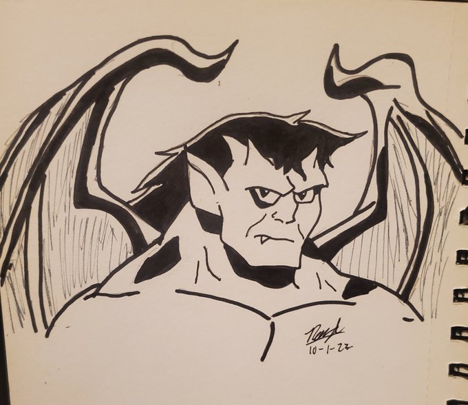 Todays prompt was "Gargoyle", and this man was no where to be seen, so had to draw him. #inktober2022 #Inktober #gargoyles #goliath