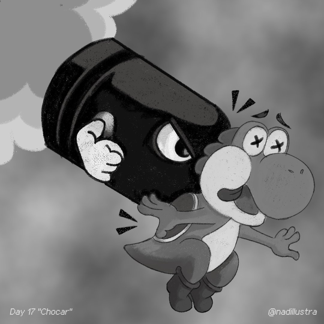 "Chocar" Pobre yoshi xD #YOSHI #Nintendo #Fanart #gamer #gun #chocar #Crash #golpe #Grayscale #digitalart #drawing #painting #arte #Day17 #inktober2021 #Inktober #inktober2021day17