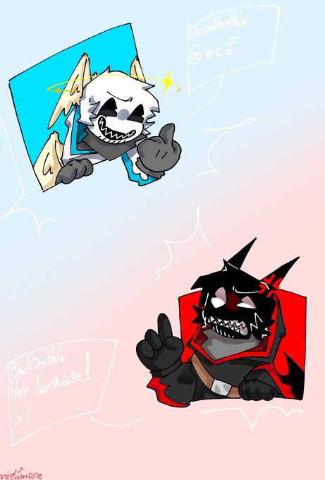 confronting yourself . GBH: fuck you dickhead! >:) BBH: hey language watch your mouth! . #badboyhalofanart #goodboyhalofanart @artists_mcyt [untag in replies]