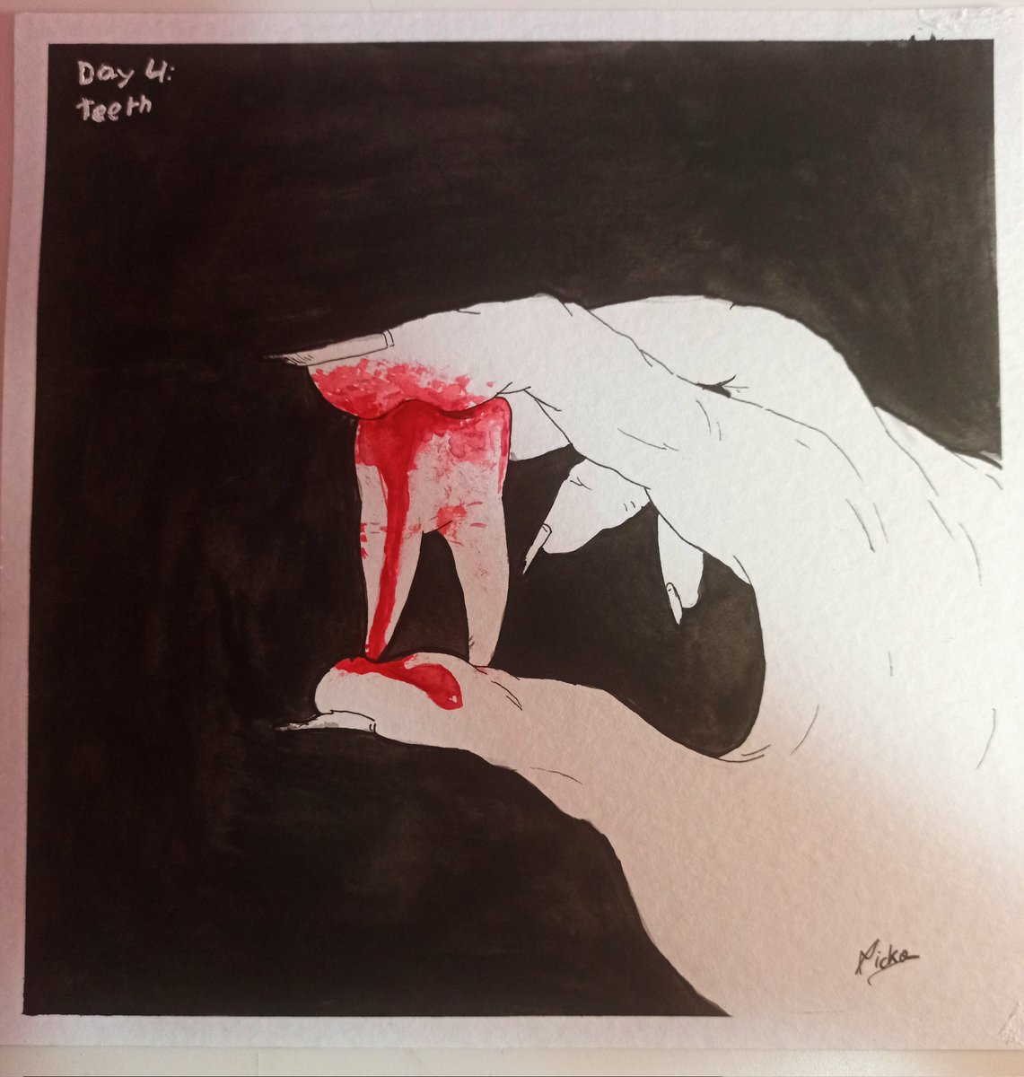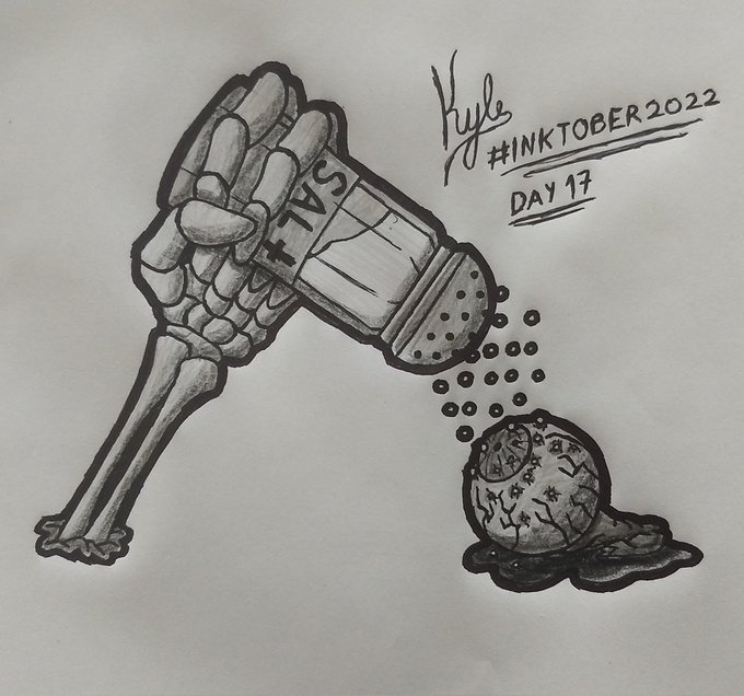 #Inktober2022day21 Haha, Whoops! Haven't tread any new ground with this one, but it showcases my usual brand of black humour, I guess. #inktober #drawtober #goreart #weirdsenseofhumour