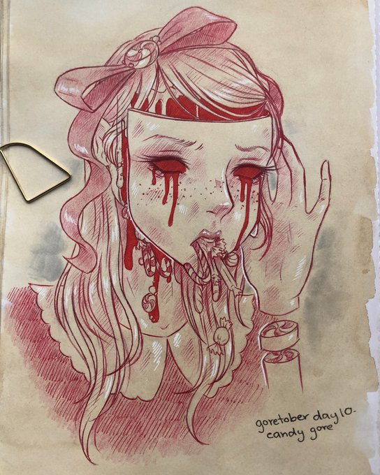 Inktober x Goretober Week 4: Song/Lyrics Day 29: Dress Down... "おどけたとりまき達 。。。私が笑わないのを。。。不思議な目をして見ているわ。。。" #inktober2021 #goretober2021 #art #blood #guro