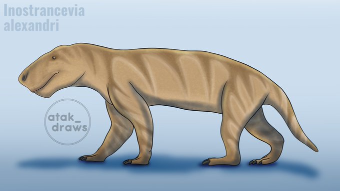 Is it a mammal? Is it a reptile? It's something in between. The late #Permian Russian #gorgonopsid, #Inostrancevia alexandri. It could reach a length of 3.5 meters and belongs to a clade of the first saber-toothed animals. #paleoart