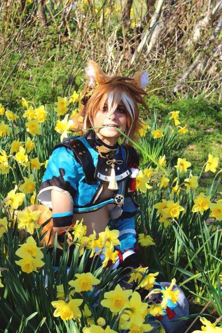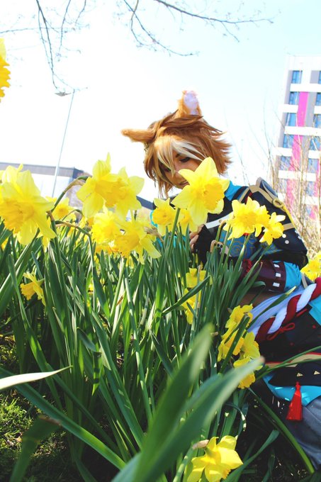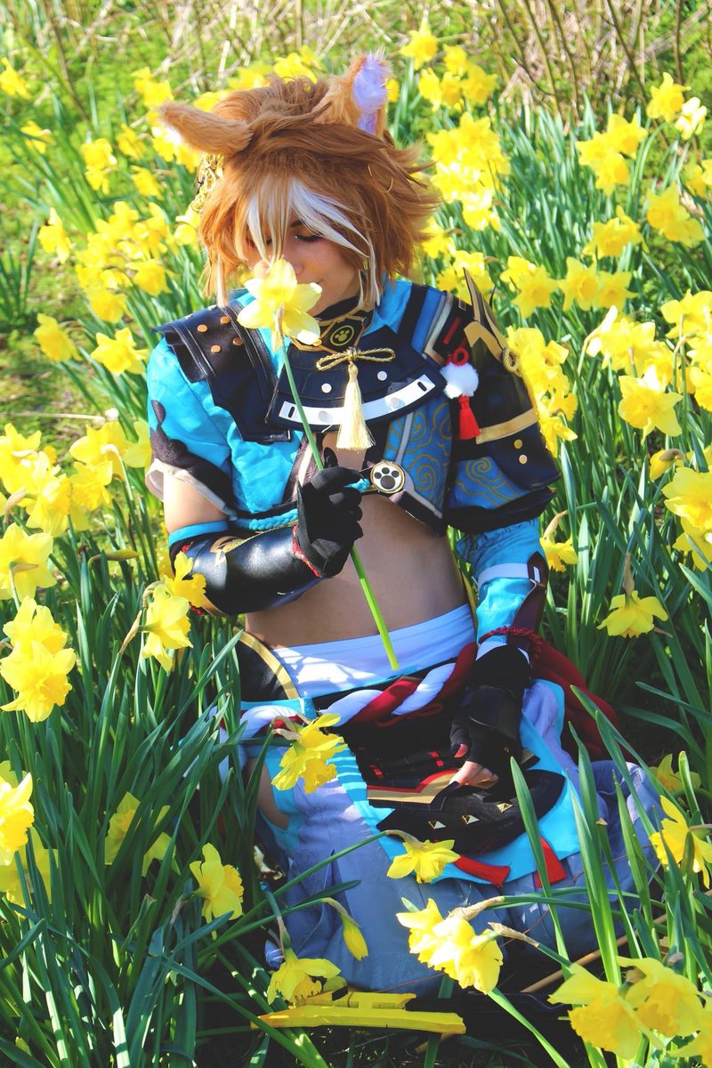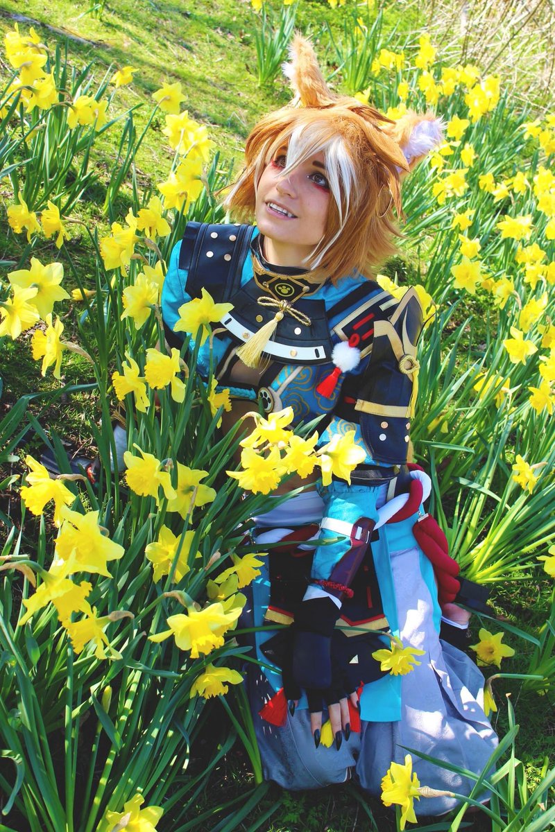This is my last daffodil set! I tried to remove the buildings from this one but no luck! Photo: Tanner #gorou #goroucosplay #genshinimpact #genshinimpactcosplay #gorougenshinimpact #gorougenshinimpactcosplay #cosplayer #ukcosplay #ukcosplayer #cosplay