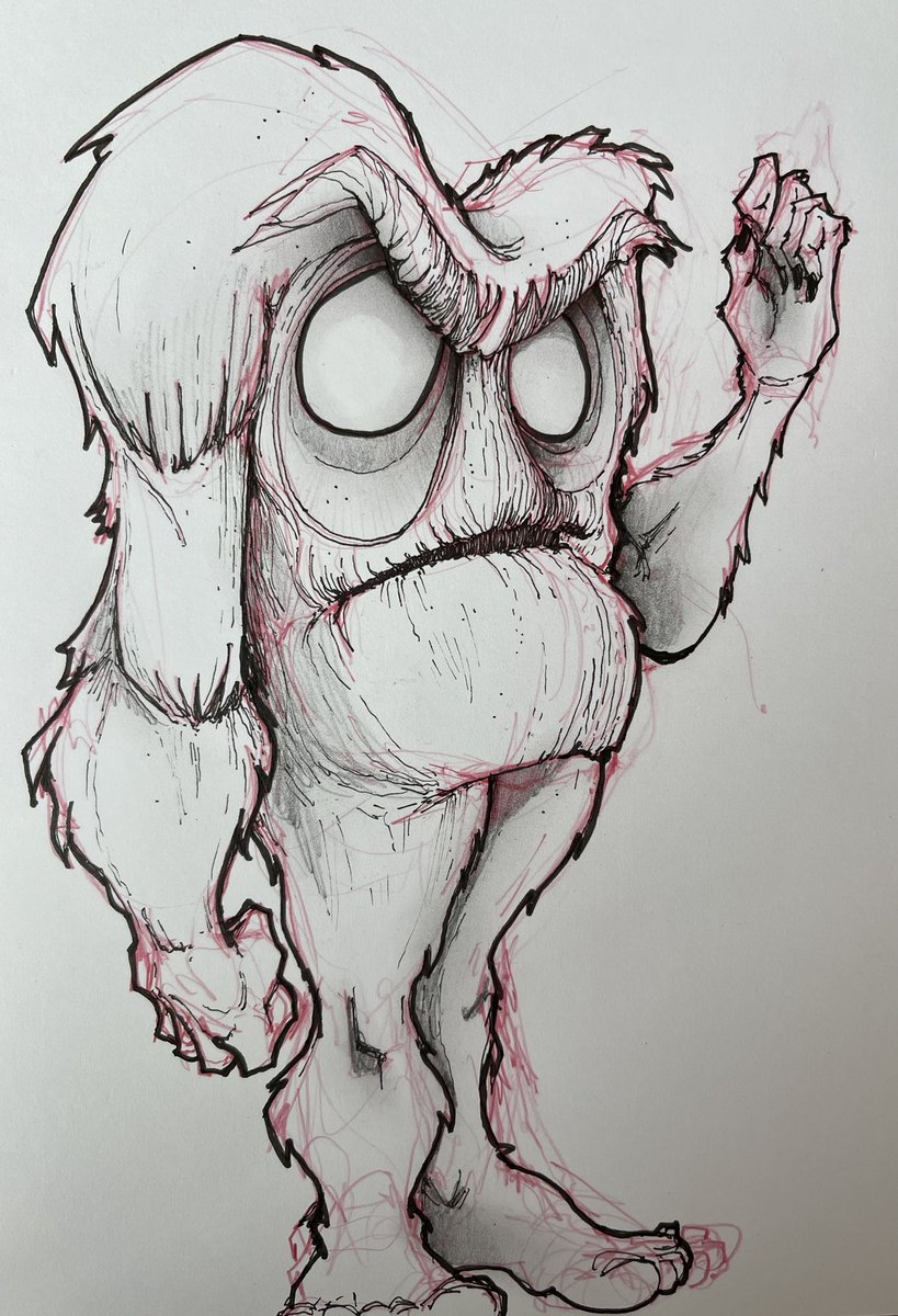 Almost #halloween so I stick with a #creepy #characterdesign lifted from @archy_type who reminded me of #Gossamer #inktober #art #illustration #doodle #draw #drawing #nashville #nashvilleartist #nashvilleart #sketching #pencilsketch #inkdrawing #monster #redpencil #inktober2022