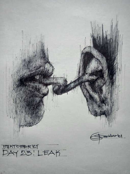 #inktober2021 Day 23: Leak "Gossip" Ballpen x Pencil #inktober2021 #Inktober2021day23 #Leak #inktober #ArtistOnTwitter #penandink #Gossip