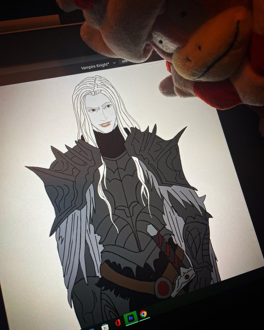Time for something new! Verena, my vampire magical-knight. . . . #Vampire #characterdesign #characterart #Victorian #gothicart #gothic #DnDcharacter #dndart #ArtistOnTwitter #ttrpg #KnightArt #fantasyart #digitalart #darkfantasy