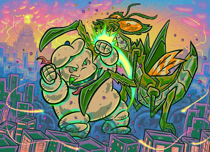 Saw @Ghostbusters #ghostbustersafterlife the other night, and loved it. So here’s STAY PUFT VS MURRAY THE MANTIS from the real ghostbusters animated series. #kaiju #therealghostbusters #godzilla #staypuftmarshmellowman #tokusatsu #slimer #gozer #illustration #art #design #cartoon