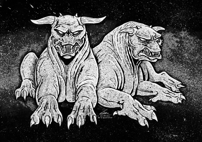 Inktober 2022 no.21 - “Bad Dog”🐶 The most difficult prompt - ‘cos all dogs are good boys/girls. Then I remembered these two… #inktober #inktober2022 #ink #InktoberBadDog #inktoberday21 #inkdrawing #artistsontwitter #TerrorDog #TerrorDogs #Zuul #VinzClortho #Gozer #Ghostbusters