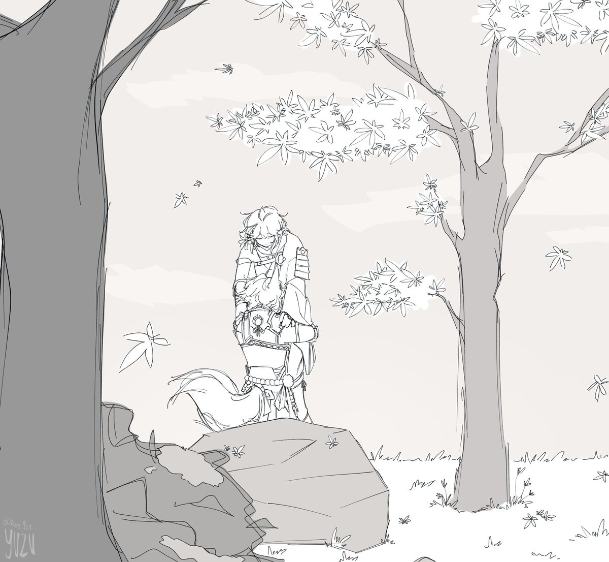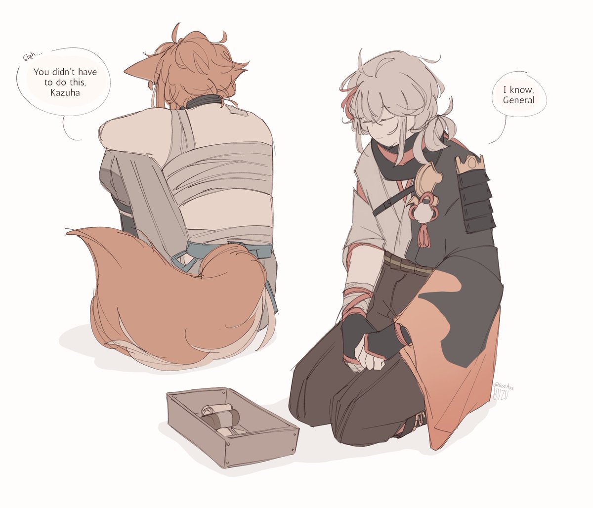 Historians will say they are bffs 🍁🦊 ( Not me having another artstyle 🧍♀️ I will have a stable artstyle one day, promise ) #GenshinImpact #genshinimpactfanart #kzuha #gorou #gozuha #kazugorou