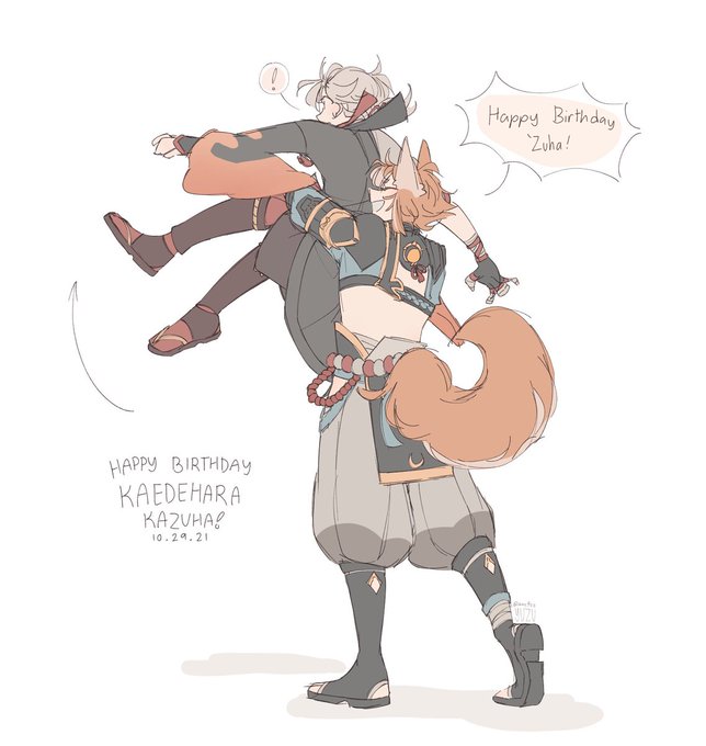 "Happy birthday, Kazuha!" (day 5 - kazuha's birthday/ first/last kiss) 🦊🍁/🍁🦊 #KazuGorouWeek21 #gozuha #kazugorou #楓原万葉生誕祭2021