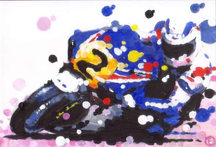 Bluethunder ハガキサイズ/アクリル/エフェクト加工 ガードナーさんですね。なんか現役から引退後まで色々ありましたが不器用な感じが好きでしたね。 #イラスト好きさんと繋がりたい #ワインガードナー #GP500