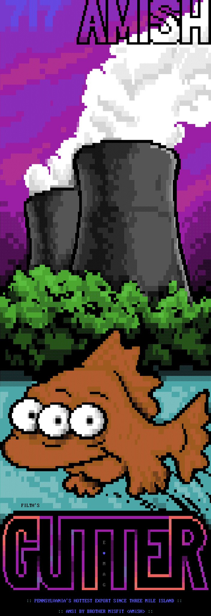 THIS DAY IN #HISTORY —— 1979 - Nuclear disaster at #ThreeMileIsland. #ANSI by Misfit // AMiSH (2018) @MBlocktronics #ansiart #ascii #asciiart #pixelart #textmode #textart #text #art #demoscene #bbs #retrocomputing #typography #graffiti #graffitiart #thesimpsons #blinky #tmi