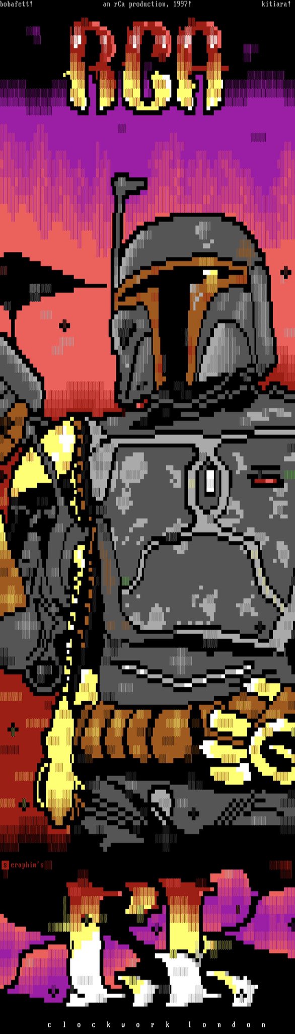 Classic ANSI by Boba Fett & Kitiara // RCA (1997) 16colo.rs/pack/rca0497a/… #ansiart #ansi #ascii #asciiart #pixelart #textmode #textart #art #demoscene #bbs #retrocomputing #retrographics #8bit #8bitart #typography #graffiti #graffitiart #starwars #bobafett #thebookofbobafett