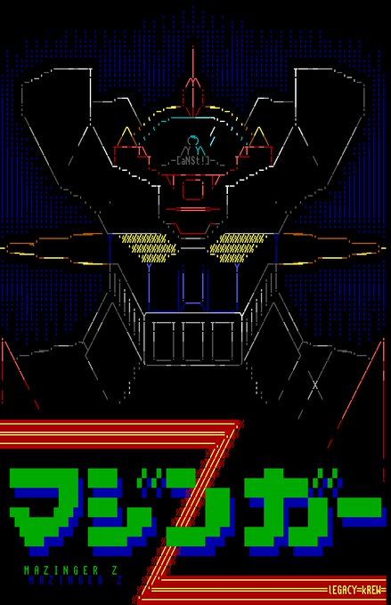 Mazinger Z ASCII by aNACHRONiST // Legacy Krew (2022) @legacy_krew #ansiart #ansi #ascii #asciiart #pixelart #textmode #textart #art #demoscene #bbs #retrocomputing #retrographics #8bit #8bitart #typography #graffiti #graffitiart #Mazinger #mazingerz #anime #shogunwarriors