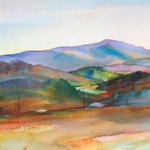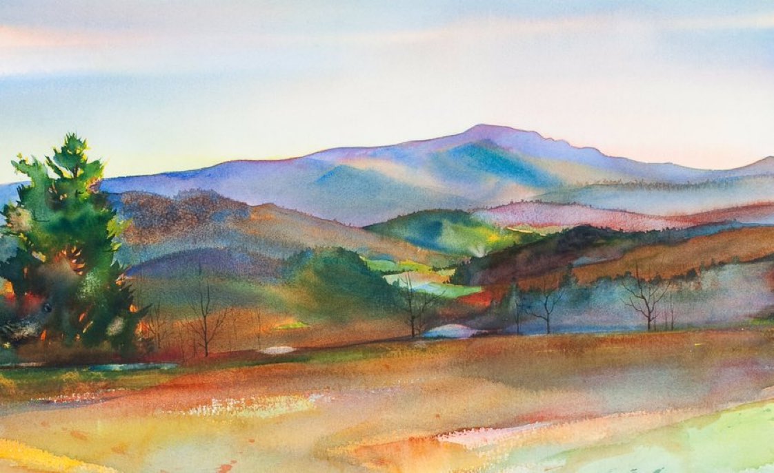 The goal for "#watercolour “edge transitions" soft but defined among middle ridge lines #landscapepainting #artistsontwitter #grandfathermountain #watercolorpainting #artinstruction #weswaugh BearTrailArt.com