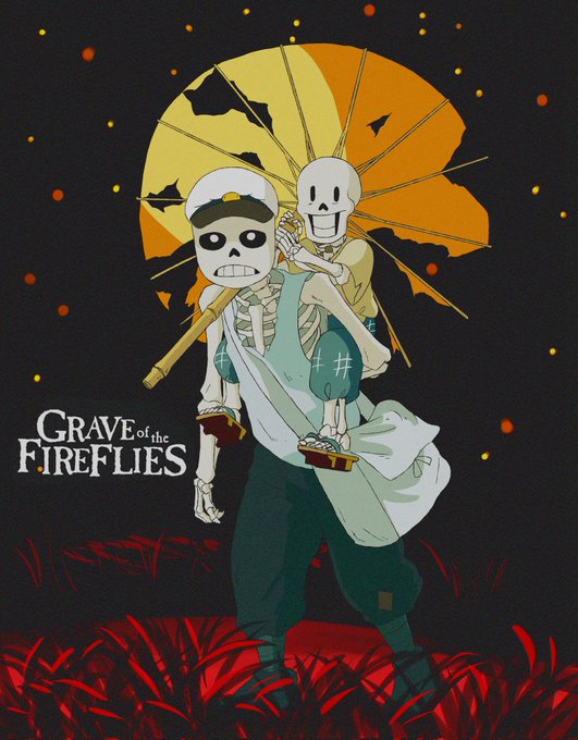 I said a long time ago that I wanted to draw this,and I did,and... I'm sorry (but not too much) #undertale #undertaleau #sans #papyrus #ghibliredraw #graveofthefireflies