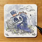 Forget me not 🖤 12/31 - Forget / #Inktober2022 #inktober #rubygloominktober #spooktober #mabsdrawlloweenclub #ink #watercolor #creepyart #skeleton #graveyard