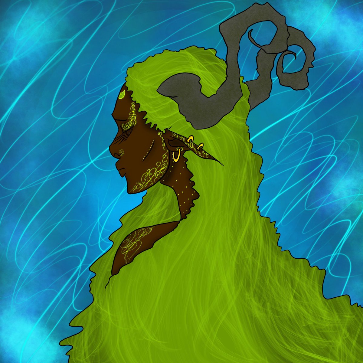 Onyx Forrest Witch 🌳🧙🏿♀️ #sicktober #inktober #blacktober #kravenart #forrestwitch #witch #greenhair #blackart #blackartist #day7 #procreate #horns