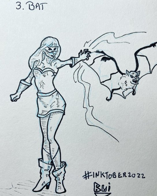 Inktober 2022, day 3: Bat Avec Illusion. #inktober #inktober2022 #day3 #bat #dailychallenge #drawing #art #gregorybui #originalcharacter #creatorowned #lesprotecteurs #illusion #unipin