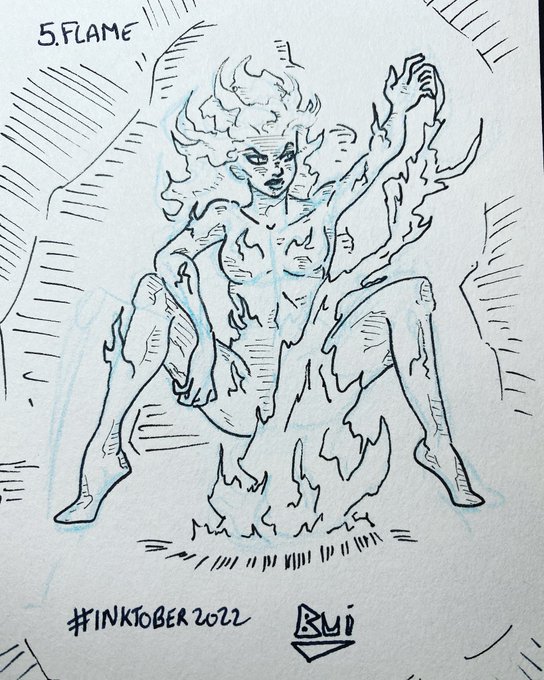 Inktober 2022, day 5: Flame Avec Volcana. #inktober #inktober2022 #day5 #flame #dailychallenge #drawing #art #gregorybui #originalcharacter #creatorowned #lesprotecteurs #volcana #fire #unipin